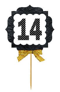 14th Birthday / Anniversary Gold Ribbon Hand Crafted Novelty Cupcake Decoration Toppers / Picks -12ct