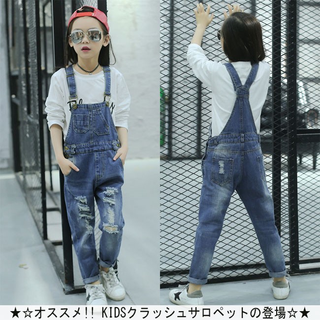 | 商品名 | オーバーオール キッズ ダメージデニムサロペット 女の子 ガールズ ジュニア サスペンダー ロング丈 サルエルパンツ ジーパン クラッシュ ブリーチ加工 ビンテージ ヴィンテージ ファッション オールインワン お出かけ 定番 普段着 |