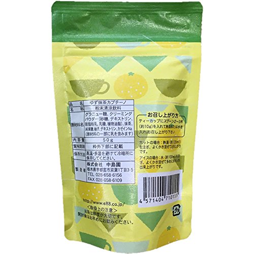 原材料:グラニュー糖、クリーミングパウダー(砂糖、デキストリン、脱脂粉乳、乳糖、植物油脂)、抹茶、純果糖、柚子、デキストリン、カゼインNa(原材料の一部に乳を含みます)