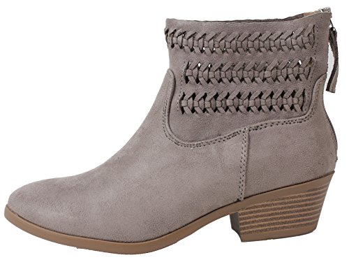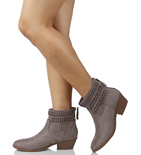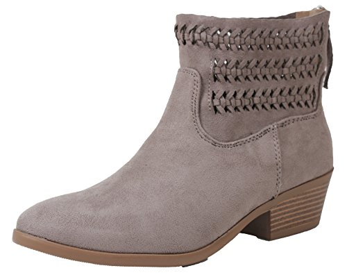 (Soda)/Women's/Boots/DIRECT FROM USA/Soda Women's Faux Suede Braided High Top Low Heel Ankle Bootie