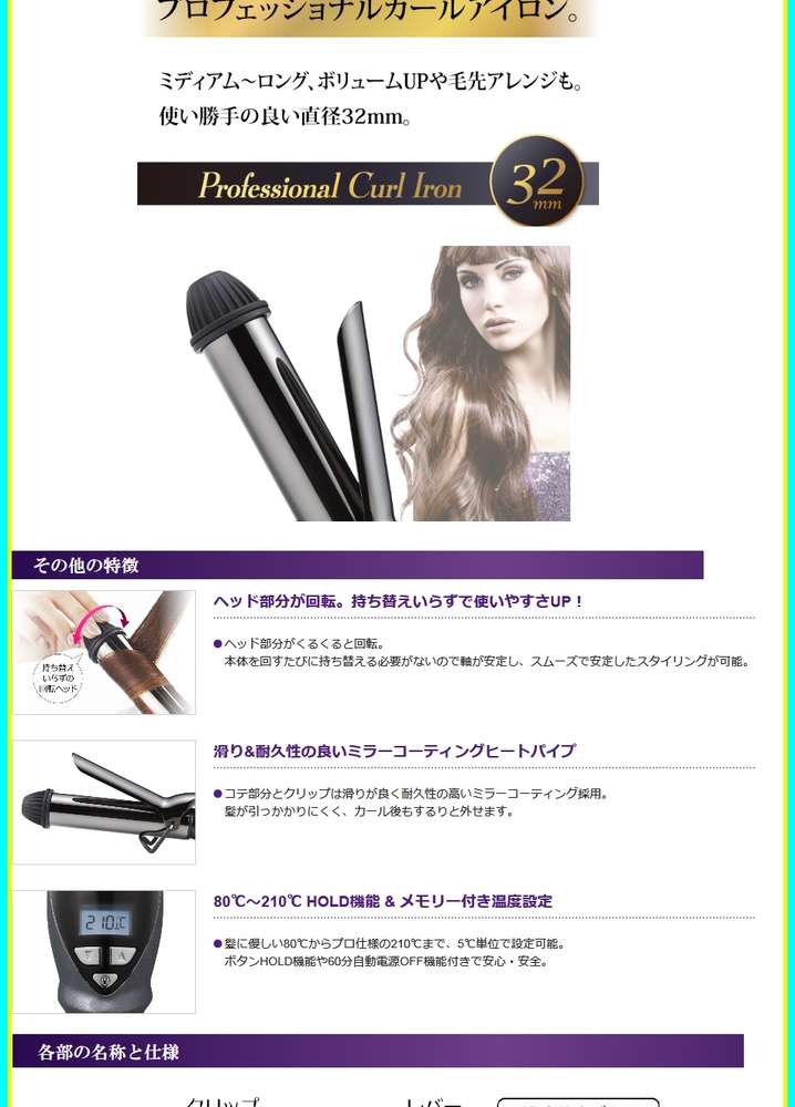 ●髪に優しい80℃~プロ仕様210℃まで、メモリー機能付きの幅広い温度設定。