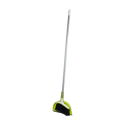 - Casabella Basics broom with dustpan, 3 piece pole, silver and green is equipped with durable pet bristles