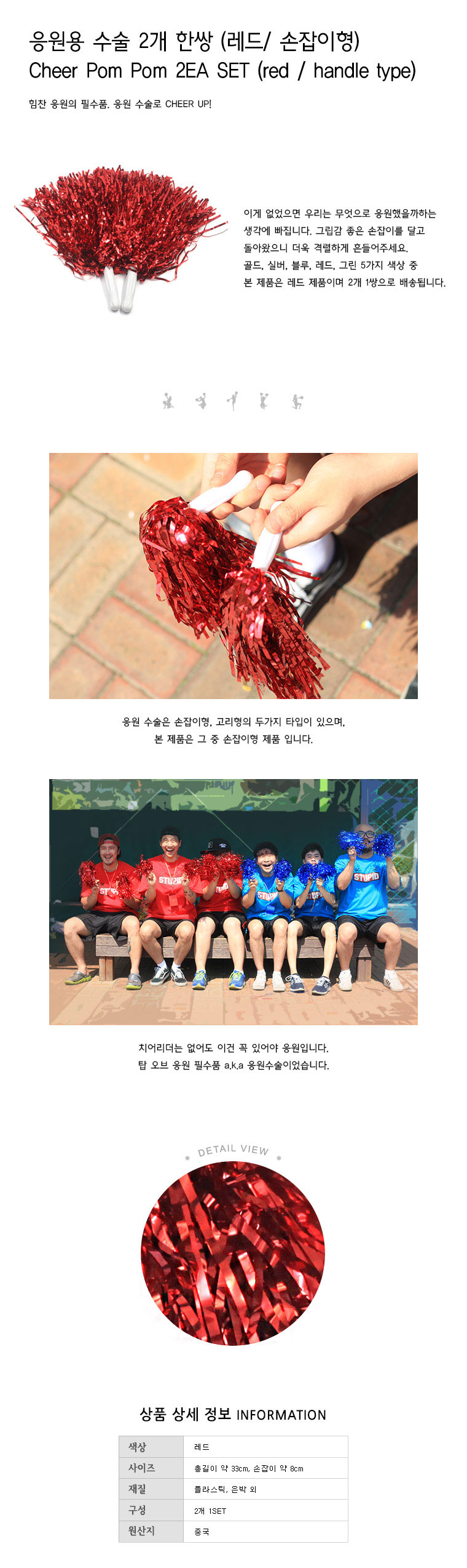 응원용 수술 2개 한쌍 (레드/ 손잡이형)