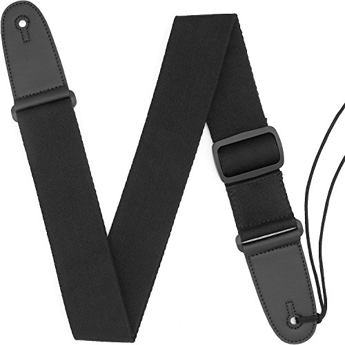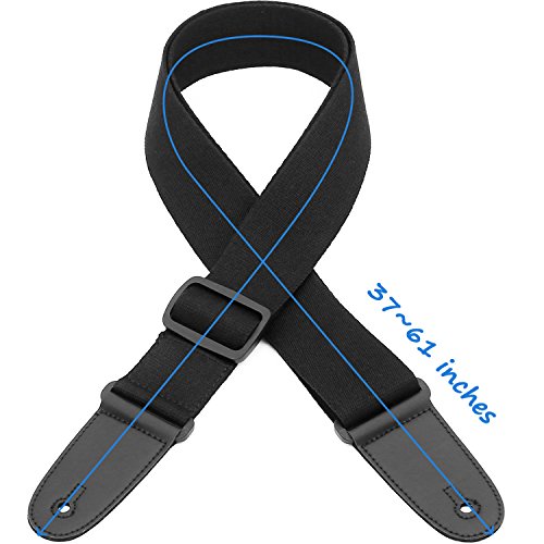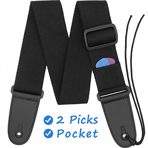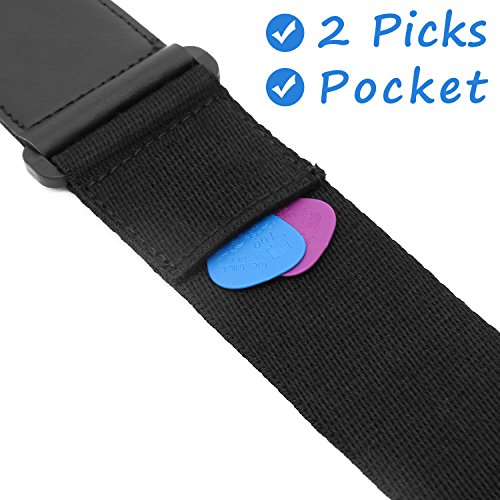 Guitar Strap Acoustic Guitar Strap Bass Strap Classical Design with Pick Pocket, 2 Pcs of Guitar Picks, Leather Ends, Tie or Acoustic Guitars -Black