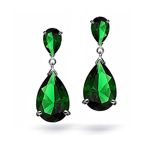 -. Title : Simulated Emerald CZ Oval Teardrop Green Crystal Dangle Chandelier Earrings