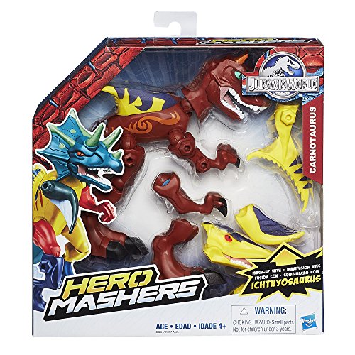 -. Feature : Jurassic World Hero Mashers figures are totally customizable / Carnotaurus figure can become a hybrid dino / Mash up with Ichthyosaurus (sold separately) to build a Carno-Ichthyosaurus / Legs, tails, heads and claws detach / Includes figure and 7 accessories