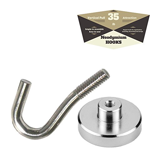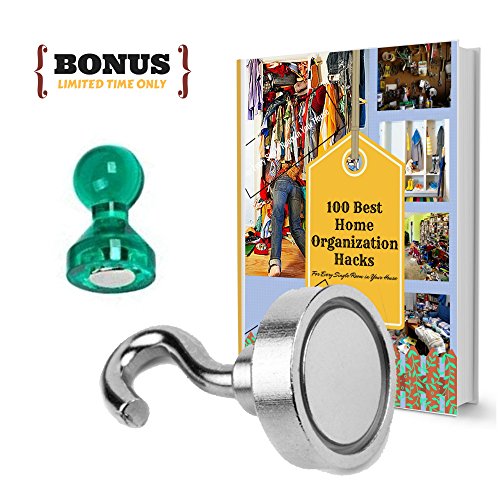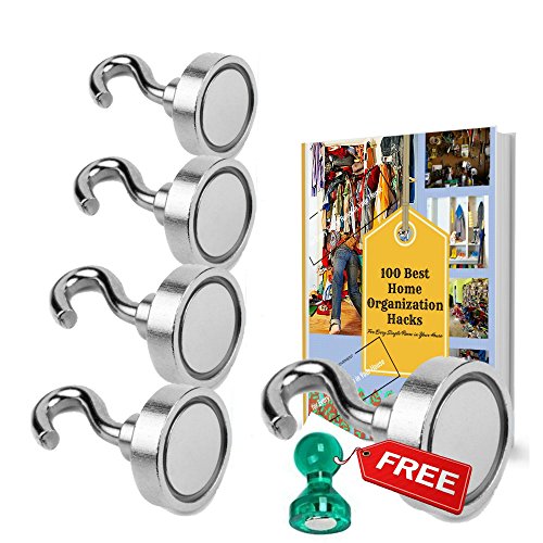 MIGHTY MAGNETIC HOOKS- The ONLY 35lb Heavy Duty Neodymium magnetic hook with a FREE Hook and an eBook- Multiuse for organizing Indoor/Outdoor.