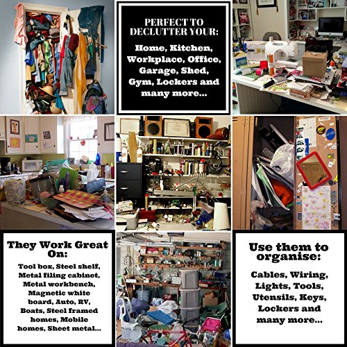 - ¥ THEY GET HOOKED: To a tool box, steel shelf, metal filing cabinet, metal workbench, magnetic white board, auto, RV, boats, steel framed homes, mobile homes, sheet metal. Use them for organizing cables, wiring, lights, tools, utensils, keys, lockers, holiday decoration and many more!