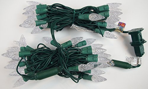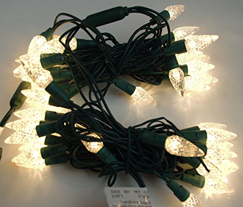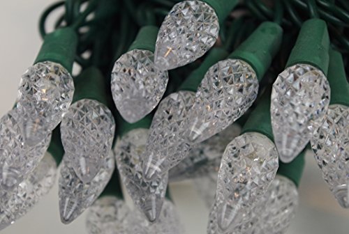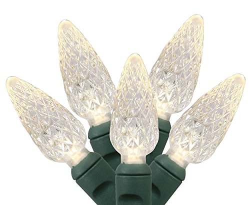 50 Light Warm White String Light Set - C6 Multi-Faceted LED. These Kringle Bros Commercial Grade Lights are UL Listed and Safety Fused, Green Wire, 17 Ft Length - 1 Pack