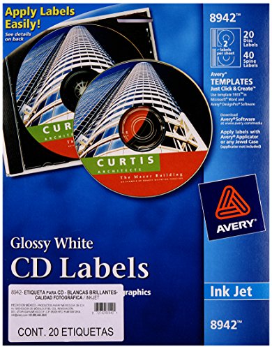 Avery CD Labels, Inkjet Glossy, 20 Pack, White (8942)