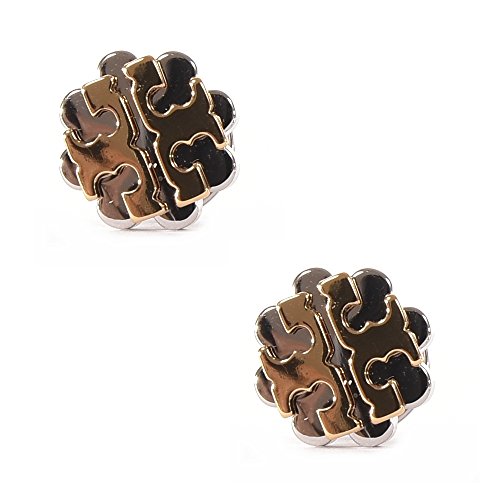 -. Title : Tory Burch Logo Flower Two-Tone Stud Earrings, Gold / Silver