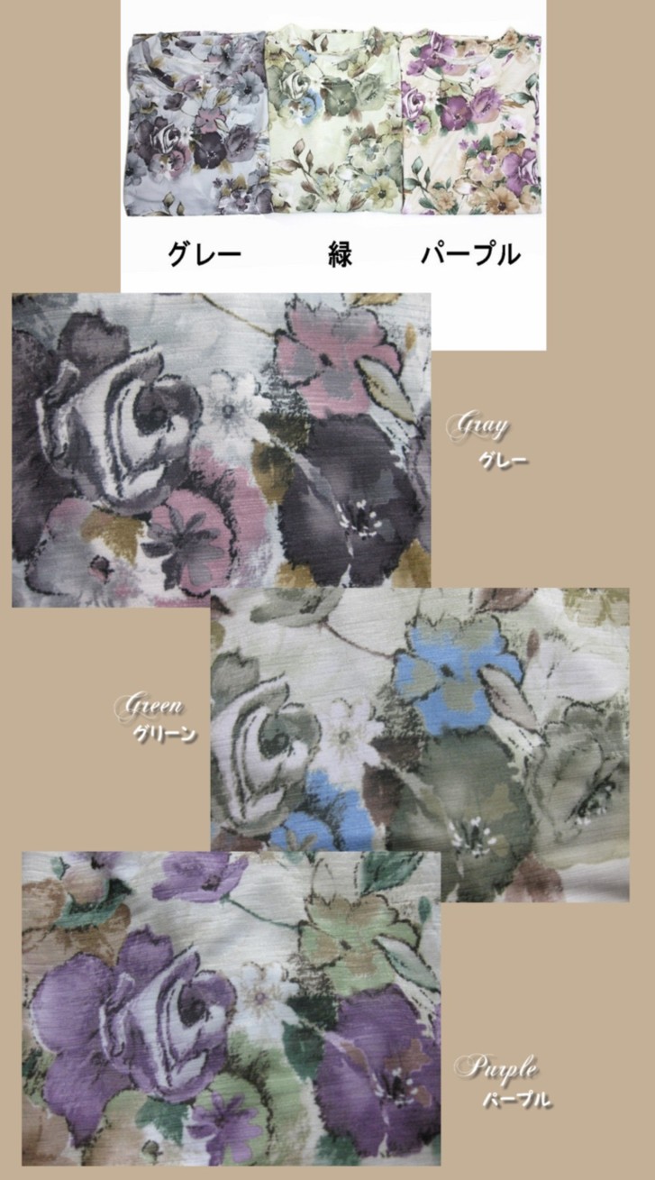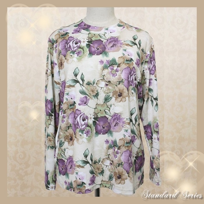 定番のエレガントデザイン♪ 淡い色合いの薔薇柄が 上品なトップスです。 なめらかでやや薄手の、 伸縮性のある生地を使用していますので、 着心地は快適です! 肌触りも良く、 これからの季節におすすめの、 大人のカジュアルシックなアイテムです! |