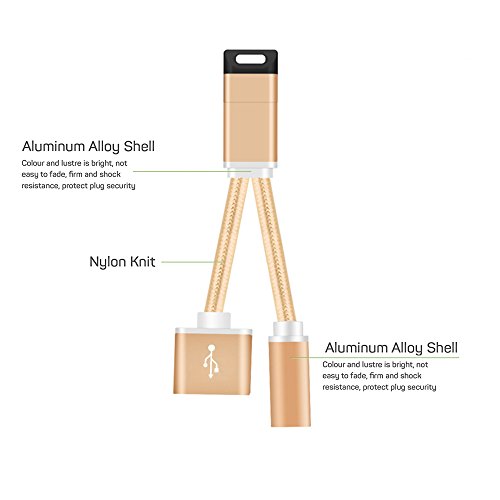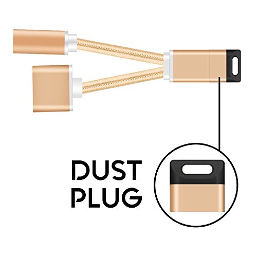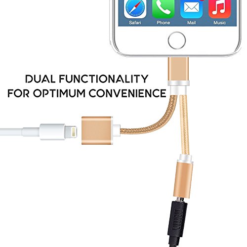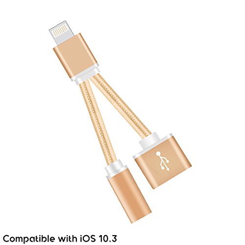Upgraded Version Braided Type Lightning to 3.5mm Audio Headphone Jack Adapter Splitter Cable and Lightning Charger Port Supports iOS 10.3 for iPhone 7, iPhone 7 Plus (Gold)