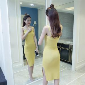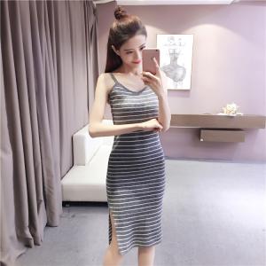 タイトワンピース ひざ下丈 スリット カジュアルワンピース キャミワンピース プチプラ 無地 ボーダー 大人カジュアル