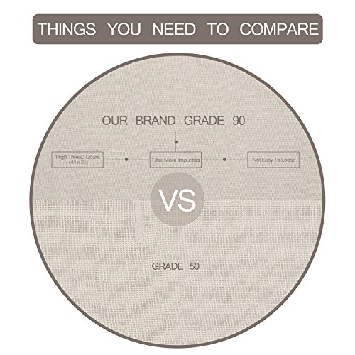- GRADE 90 CHEESECLOTH - Grade 90 is the highest grade and best quality in cheesecloth. It has 44x36 threads/inch, more impurities will be filtered out. It is perfect for household cooking and chef's ingredients preparation because of its durability.