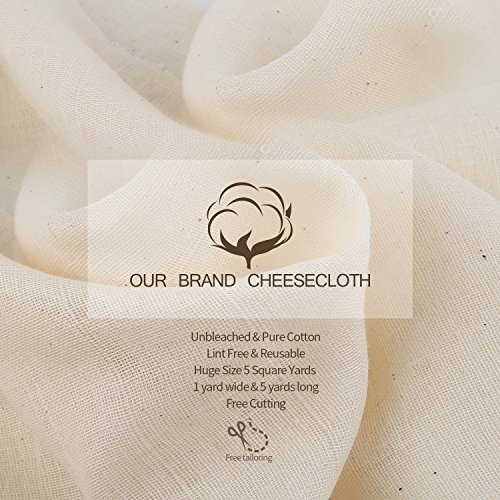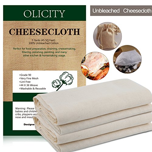 Cheesecloth, Olicity 100% Unbleached Natural Food Grade Cotton Fabric【Grade 90, 45 Square Feet】Reusable Ultra Fine Cheesecloth Strainer for Cooking, Baking, Filter, Hallowmas Decorations (5 Yards)