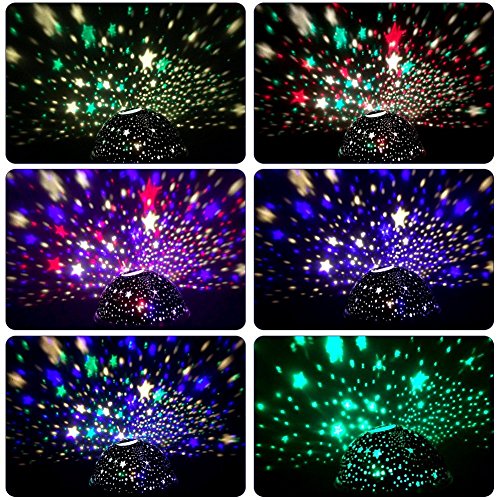 - PROJECTOR, ALSO LAMP- Nightlight lamp with dome on, or a 360 degree projector, romantic colorful atmosphere, fascinating starry sky with star and moon, to enjoy your own universe