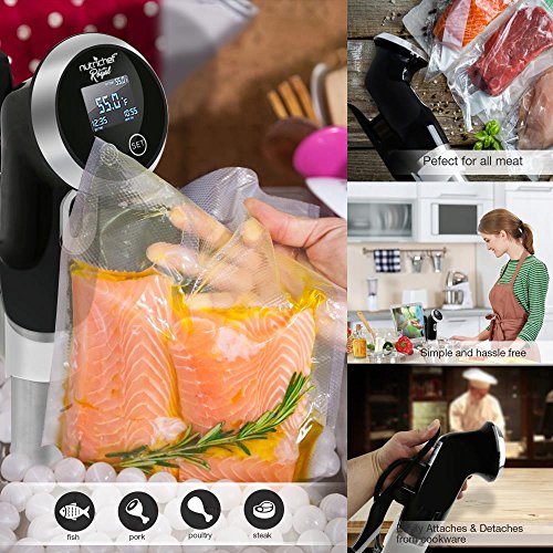 - GREAT ADDITION TO ANY RECIPE: The sous vide equipment is your secret weapon to mastering any recipe easy. Overcooking can result in a loss of moisture and volume. Precision cooking with the sous vide immersion circulator enables you to cook steak, poultry, fish, egg, and vegetables expertly from edge to edge.