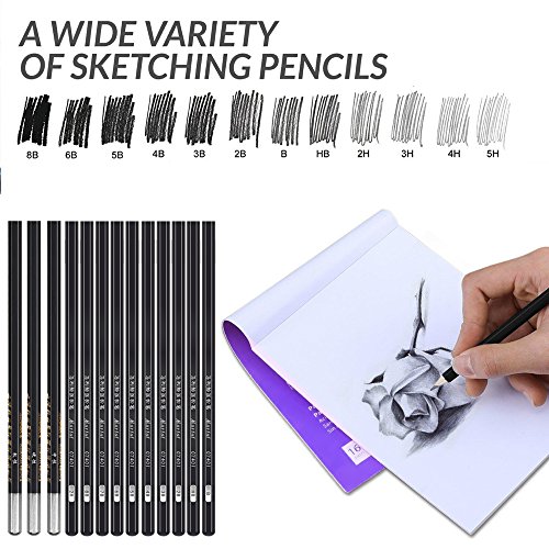 - [SUIT FOR EVERYONE]:Pencil is a great tools to express your emotion.unique art supplies to drawing and sketching,you can feel free to use the pencils to describe anything you want.From sketching biginning to highlighting,erasing to sharpening,everying you need is all here,no need to deal with a mess when you're being creative.Various of pencils will enhance the layers of the painting,increasing the realistics of the painting,fit for students,childs and adults,expecially great for professional.