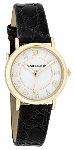Women's Watches by Daniel David - Minimalist Gold And Black Crocodile PU Leather Watch - Make Every Second Count - DD15703