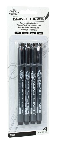 Royal & Langnickel Nano-Liner Drawing Pen, Black, 4-Pack