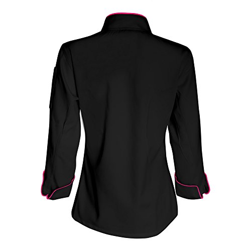 10oz apparel Long Sleeve Womens Black Chef Jacket with Hot Pink Piping