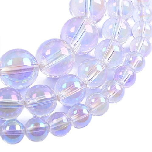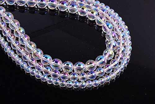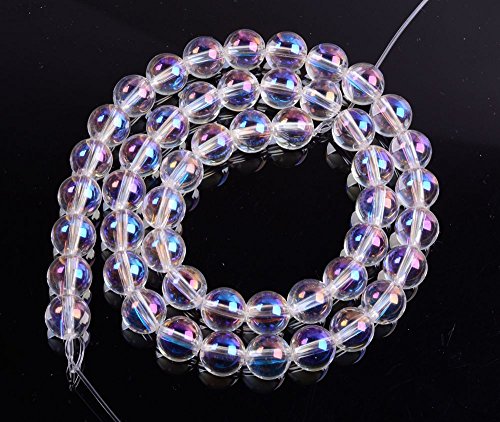Aqua Aura Clear Quartz 8MM Gemstone Round Loose Beads 16" for Jewelry Making
