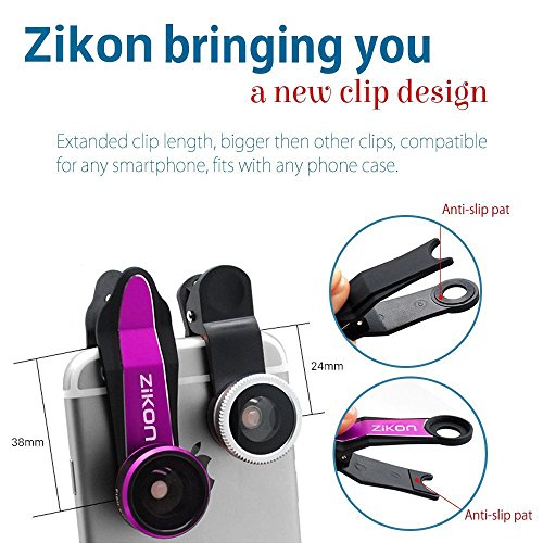 WIDELY COMPATIBLE, LONG CAMERA MOUNTING CLIP FOR IPHONE : Contrary to most lens kits, ZiKON Phone Camera Lenses Kit comes with an extended length lens and phone mounting clip. It's superior design ensures smooth, anti-slip adjustment. This clip is longer than most clips on the market and compatible with a vast range of devices, such as iPhones, Samsung and Android devices, iPads and other tablets!