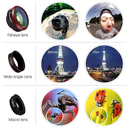 ZiKON'S 3 in 1 SPECIALTY CAMERA LENSES KIT: Now without much experience in photography or spending thousands of dollars on lenses, you can experiment with the enhanced photographic effects provided by the ZiKON Phone Camera Lenses Kit! We offer you a superior, wide range Fisheye Lens (198 ° right-left range), an astounding 15x Macro Magnifying Lens, to explore the miniscule details of nature and a Wide Angle Lens, to capture a panoramic view of any scenery!