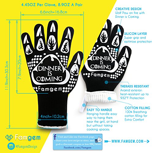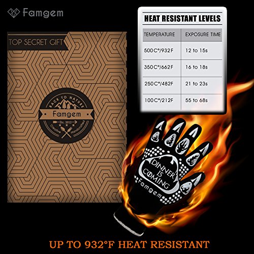 - WHAT TYPE OF HEAT PROTECTION? - Famgem Gloves are designed to protect your hands from flames and high temperatures. That means you don't have to worry about burning your hands while cooking or handling objects that are too hot for bare hands. - This our GUARANTEE!