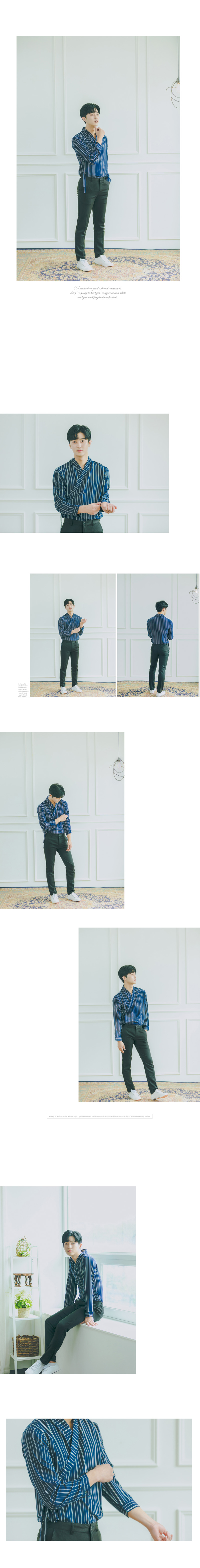 *모델 착용 사이즈:M 찰랑찰랑 매끄러운 소재를 사용한 글렌 네이비 셔츠 저고리 가벼우면서도 자연스레 흐르는 듯한 느낌의 원단을 사용했는데요 딥한 네이비 색상이지만 자체적으로 시원한 느낌을 풍기는 소재라 봄부터 여름, 가을까지 충분히 착용하실 수 있는 제품이랍니다 스트라이프 무늬가 세련된 제품인데요 어느 상황에서나 다양한 무드로 착용할 수 있는 셔츠형 저고리로, 생활한복이 생소하신 분들이 부담 없이 코디 할 수 있는 제품이랍니다