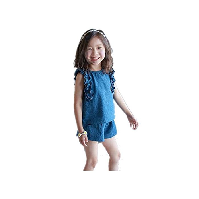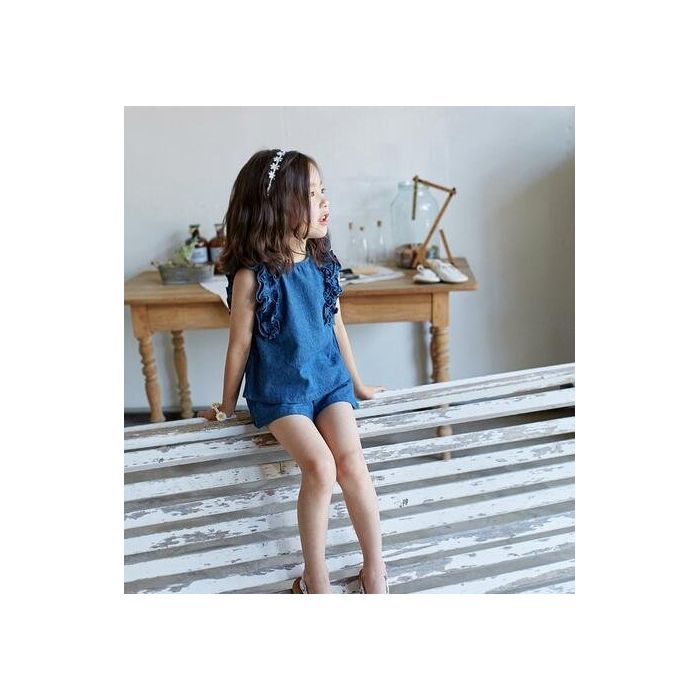 원본상품명: JUST style セットアップ 夏服 フリル デニム ブラウス パンツ 上下セット 女の子