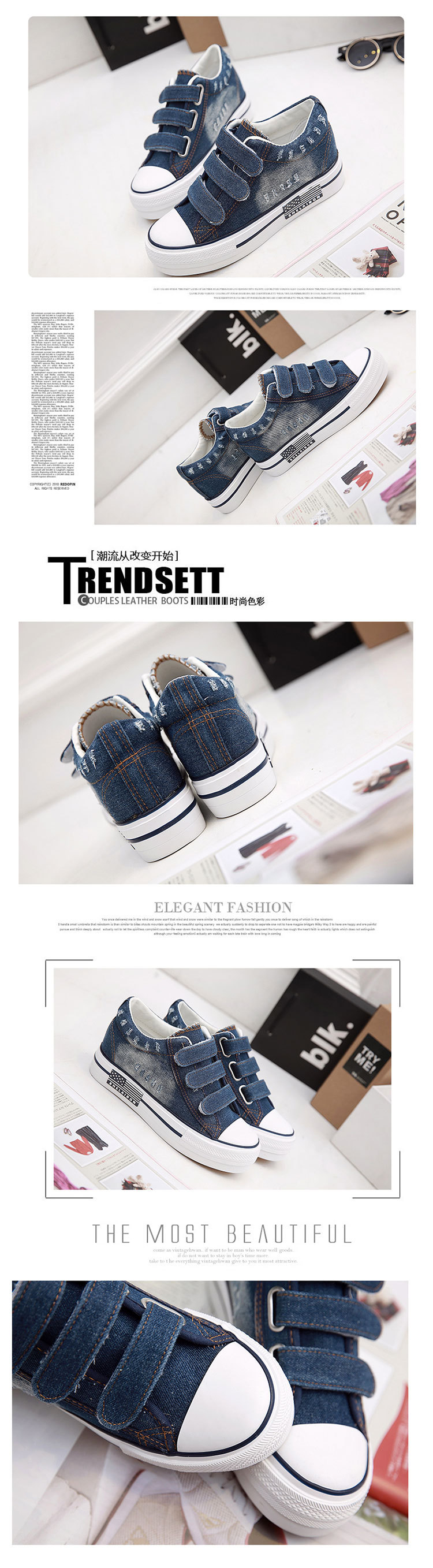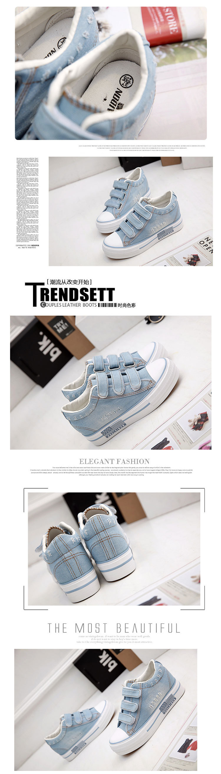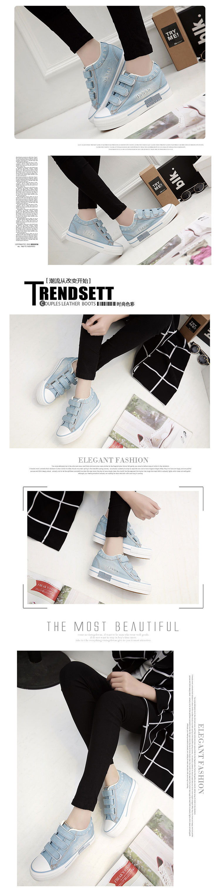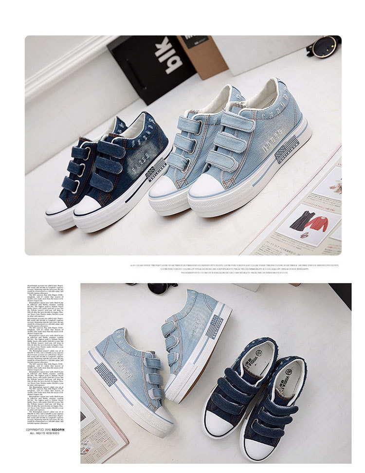 u0026nbsp;水洗牛仔厚底内增高帆布鞋