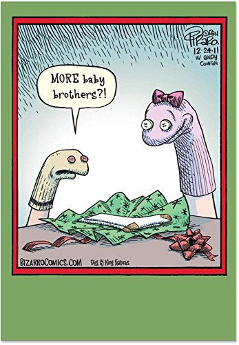 B1852 Box Set of 12 Baby Sock Brothers Unique Funny Christmas Cards with Envelopes