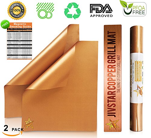 - ✅HEALTHY COOKING FOR YOUR FAMILY – JivStar copper grill mats are FDA approved and made from premium PTFE-Fiberglass coating, no PFOA, silicone or other dangerous chemicals! That means you can cook tasty and healthier food for your family and friends.