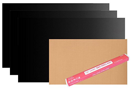 LoveU. NonStick Oven Mat Heavy Duty XXL 23" x 16.25" for Oven Liner, BBQ Mat, Microwave Oven liner, Gas Grills, Charcoal Grill (Black 3+1)