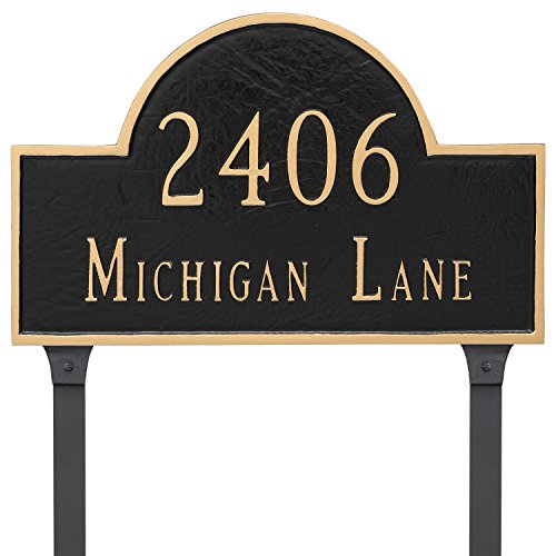 Montague Metal 12" x 20.5" Classic Arch Two Line Address Sign Plaque with Lawn Stakes, Large, Chocolate/Gold