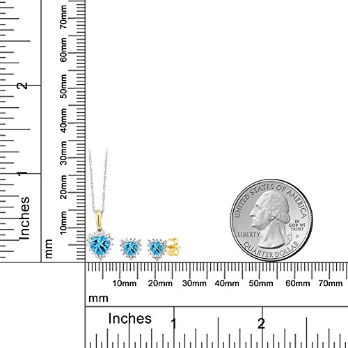 -. Title : 18K Two Tone Gold 1.53Ct Heart Swiss Blue Topaz and Diamond Pendant Earrings Set