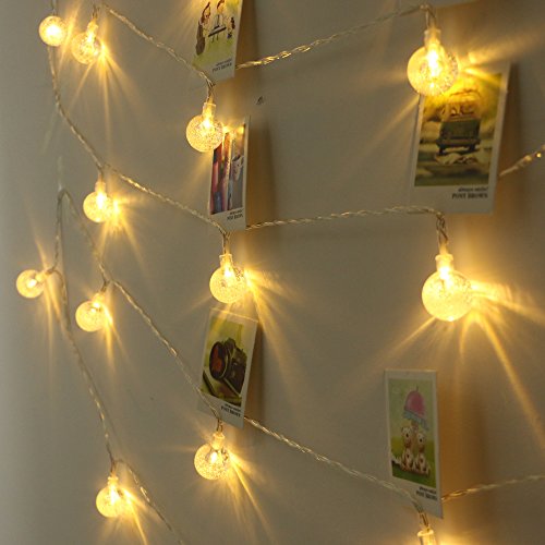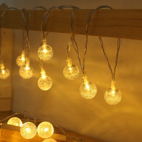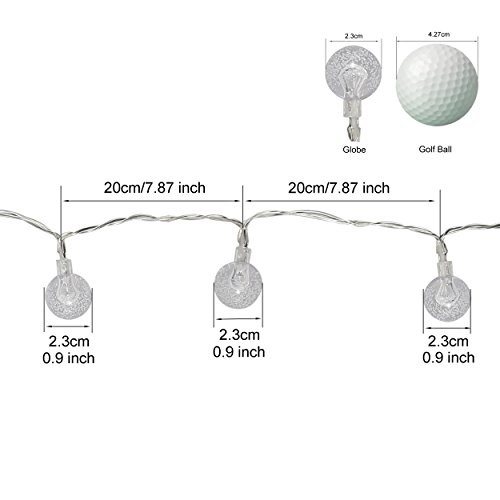 - LED Globe String Lights, 20FT(6M) with 30 LED Crystal Lights, long enough to wind around the decorations you want to.