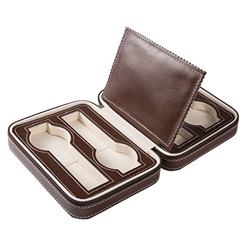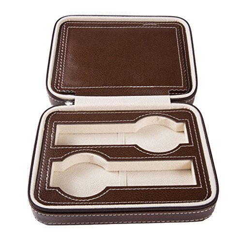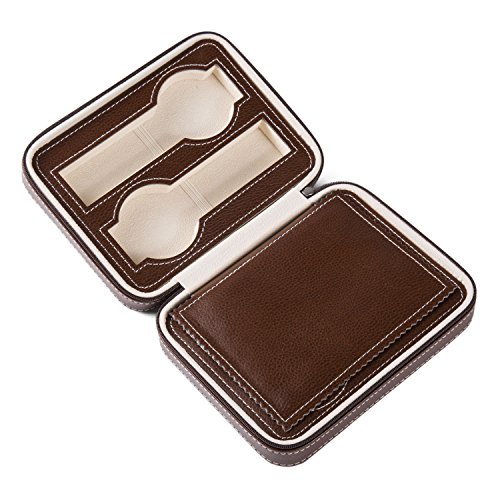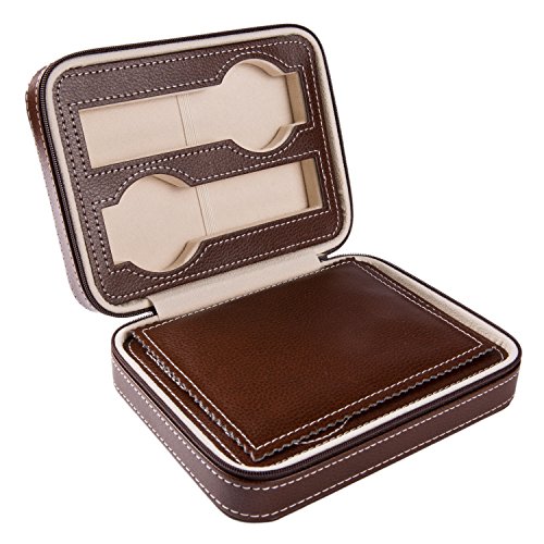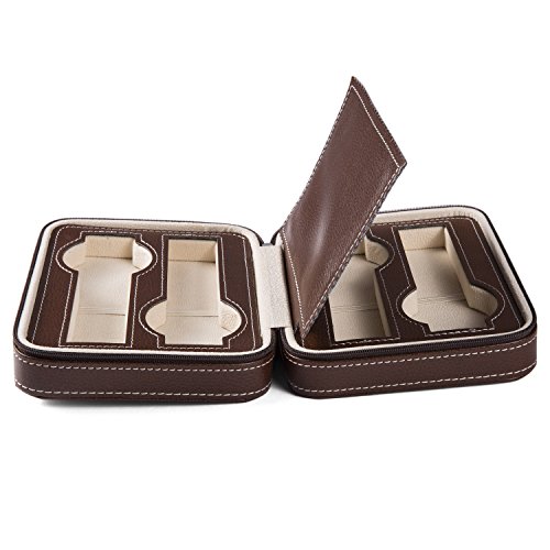 4 slot Zippered Watch Case Storage Travel Organizer Collector (brown)