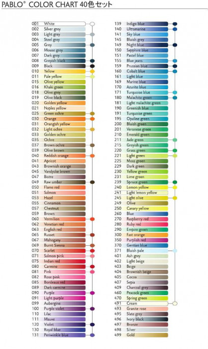 アーティストやプロの方のニーズに応えられる油性色鉛筆です。3.7mmのソフトな芯。パステルと色鉛筆を合わせたようなやわらかな描き味で、塗りつぶしが容易にでき、しっかりとした画面に仕上がります。高品質の顔料を使用しているので発色が良く耐光性に優れています。 |