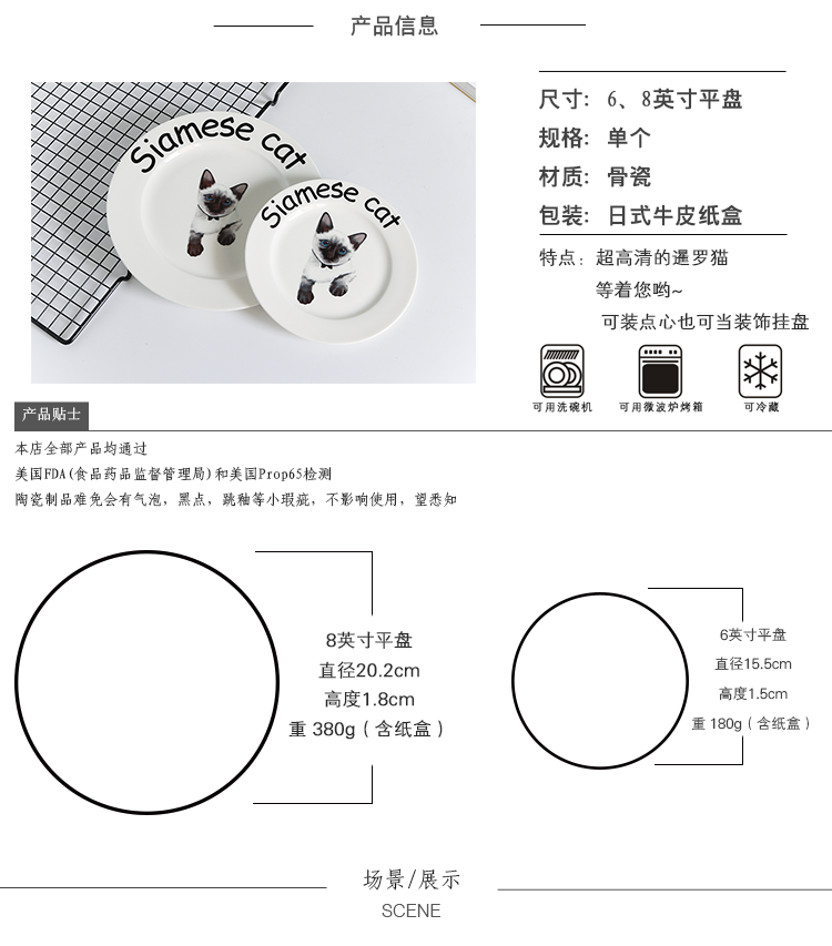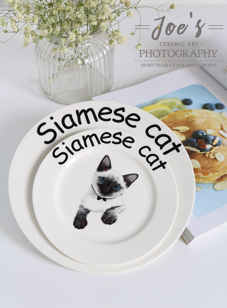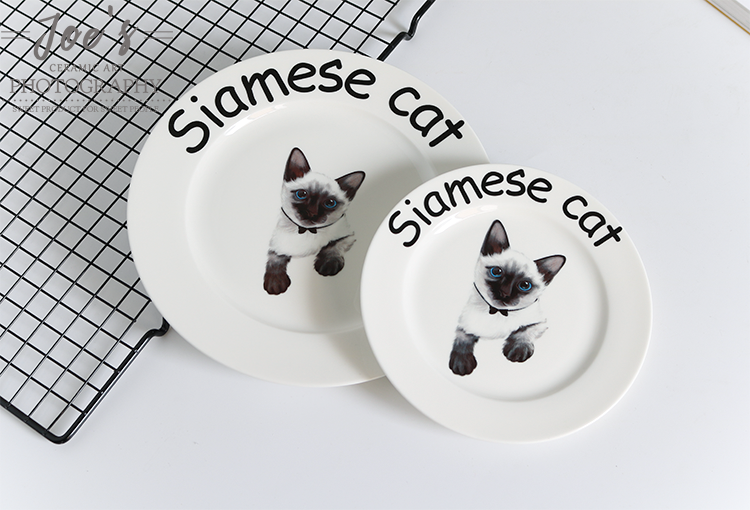 萌萌哒暹罗猫陶瓷餐具创意新品宠物系列家用餐盘挂盘装饰英文平盘