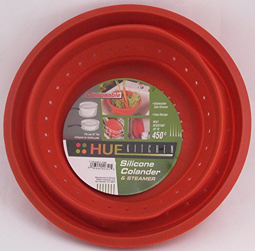 -. Feature : Ingenious design combines two tools in one, a colander and food steamer / Collapses flat for easy storage / Steamer folds into two sizes to fit deep or shallow pots, 10-inch diameter or larger / Made of premium-quality, food-safe silicone / Dishwasher safe