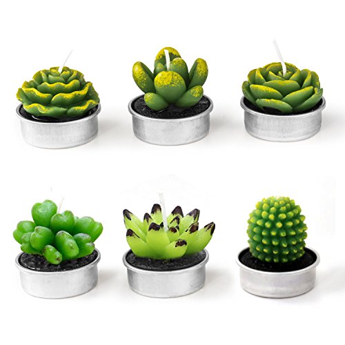 Product Features: ? The candle has creative succulent shape, vivid and lifelike, can be home table decoration or as a gift for your families and friends. ? The succulent shape candle can light up the happy and romantic festival atmosphere. ? Nice ornament for home decoration, birthday party, wedding venue ornament, candle feast, festival party decoration etc. ? 6 kinds of shape for your selection, each candle last burning steadily for 120 minutes(The succulent part burns about 30 minutes,the soil part burns about 90 minutes) and it's re-lightable .