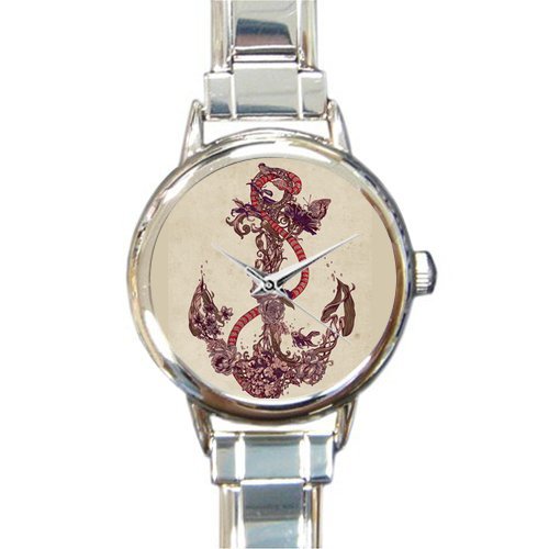-. Title : Christmas Day Gift Cool Anchor with Flower Art Design Round Italian Charm stainless steel Watch