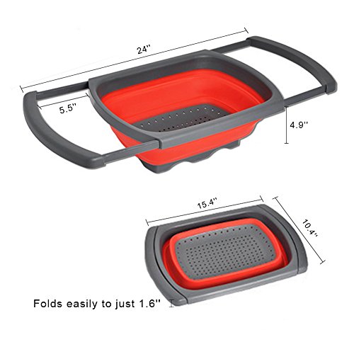 - Compact & Easy To Clean - Rectangular shape fits most kitchen sinks.Compact space-saver design collapses and folds to store in tight spaces and shallow drawers.Dishwasher Safe.