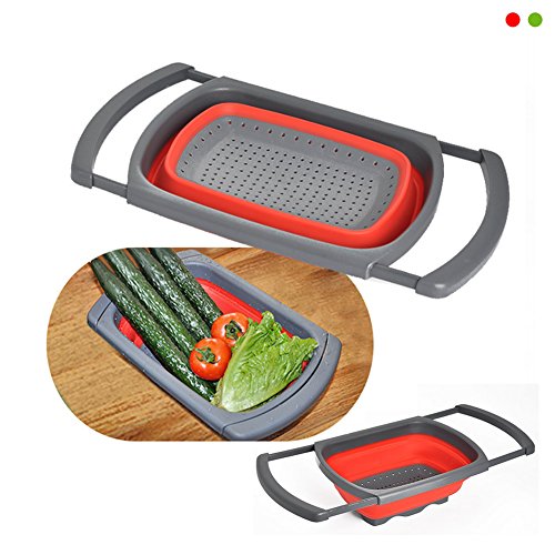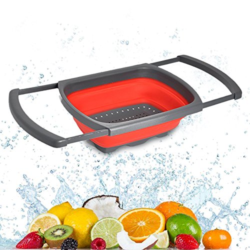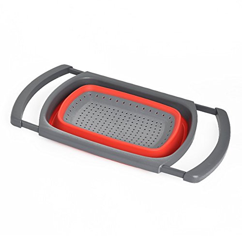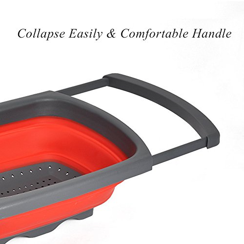 ALPHELIGANCE Collapsible Silicone Over-The-Sink Colander Kitchen Food Strainer with Extendable Handles (Red)