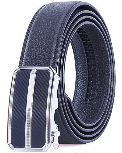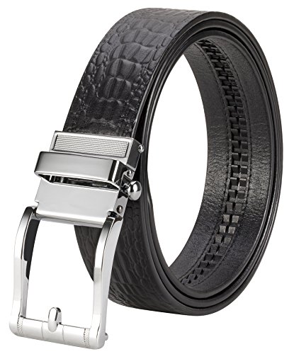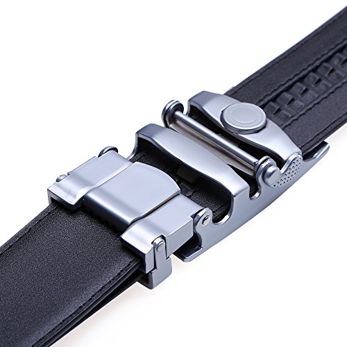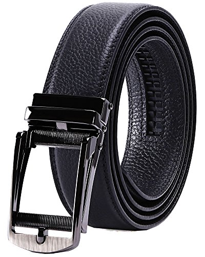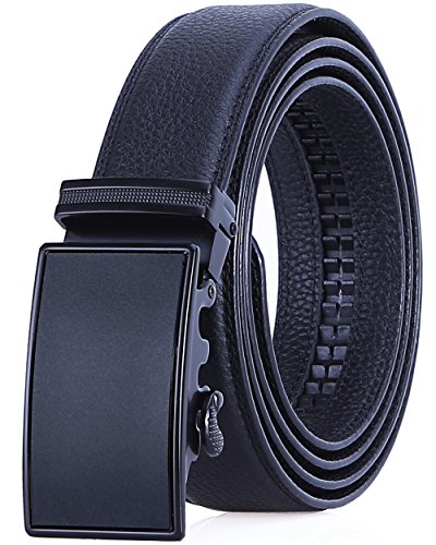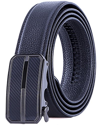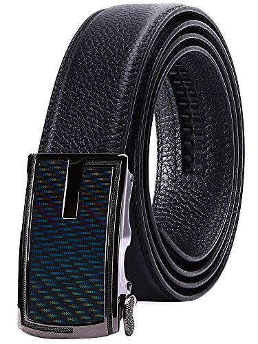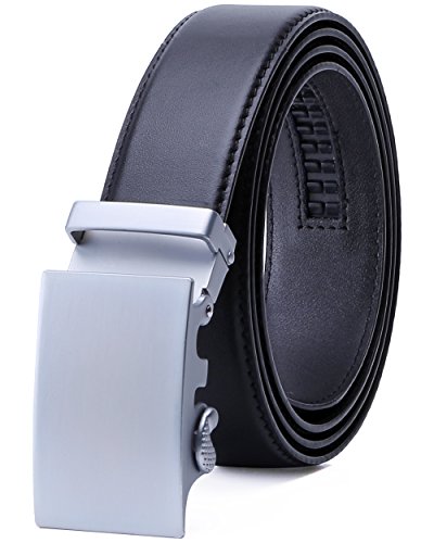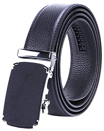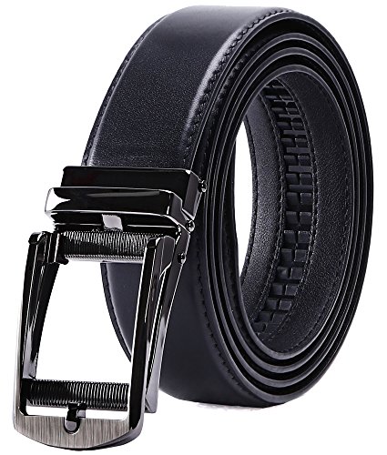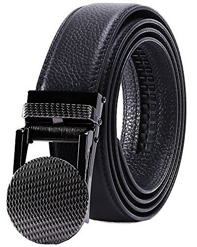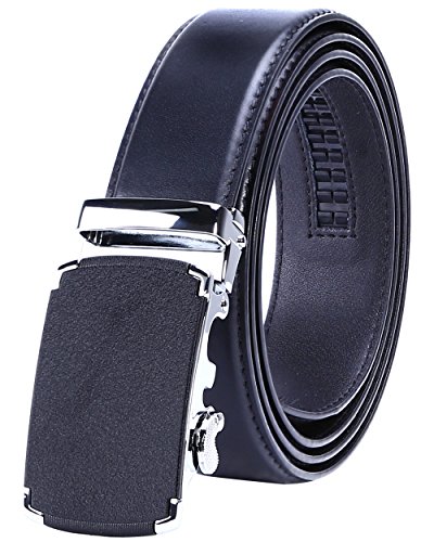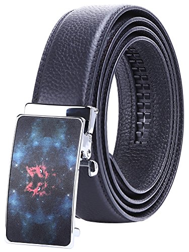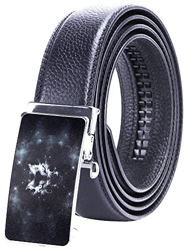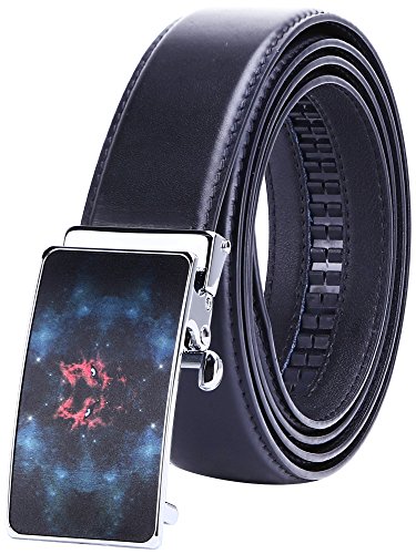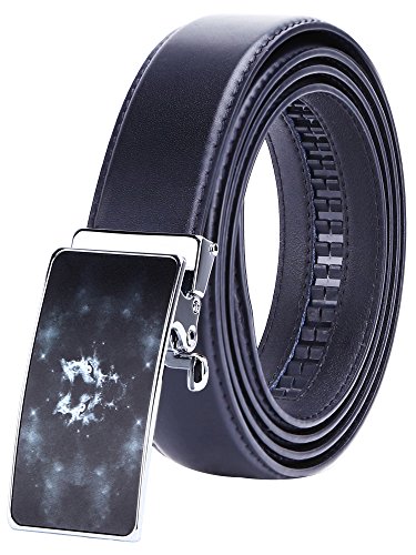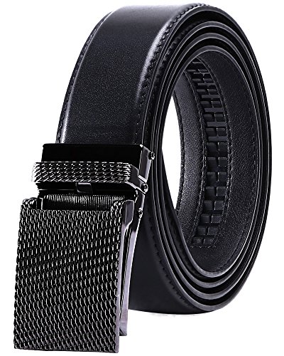 TRIM TO FIT - The total length of this leather belt is 130cm (excluding the buckle), suit for 28" - 44" waist. The high quality ratchet belt can be easily cut to your measurements. Wide Strap: 1 3/8" (35mm)