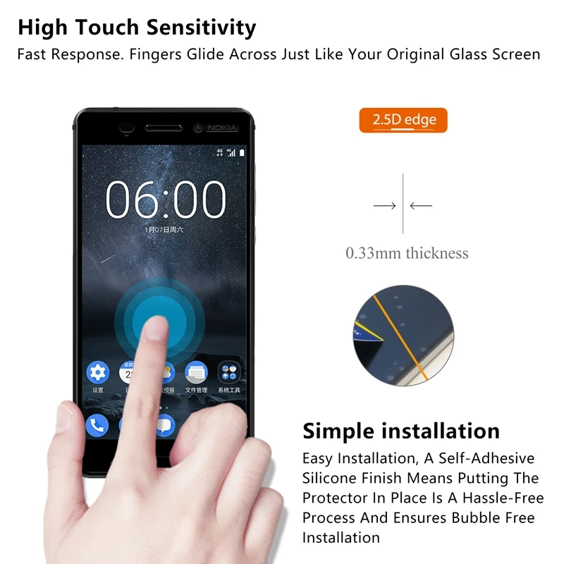 Full Cover Tempered Glass for NOKIA 6 Screen Protector FOR Nokia 6 5.5" Electroplated Protective Film