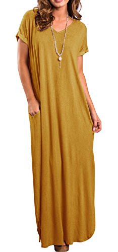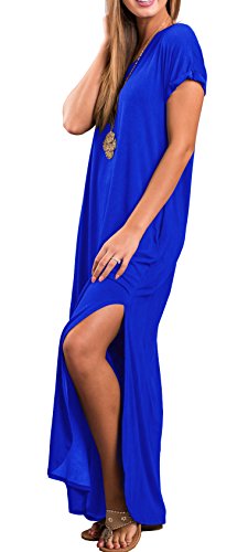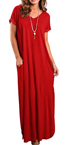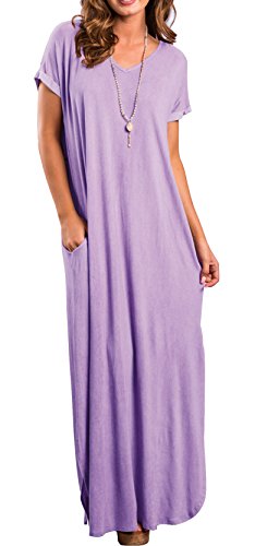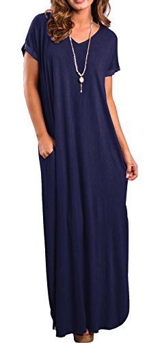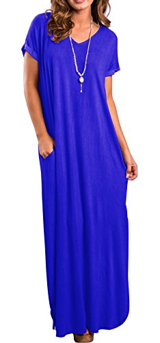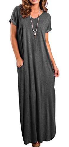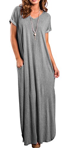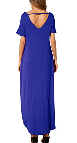 Short sleeve, V neck and Backless, Long dress,Pocket,Maxi dress, loose fit, the dress is very loose, oversized.If you don't want it very loose, then choose one or two sizes down.